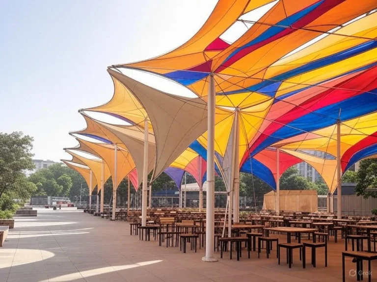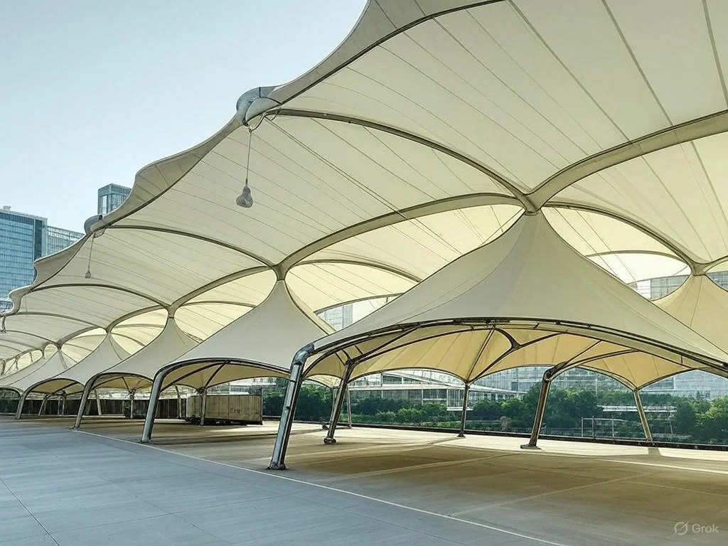 Modern tensile structures designed for strength, flexibility, and aesthetic appeal.